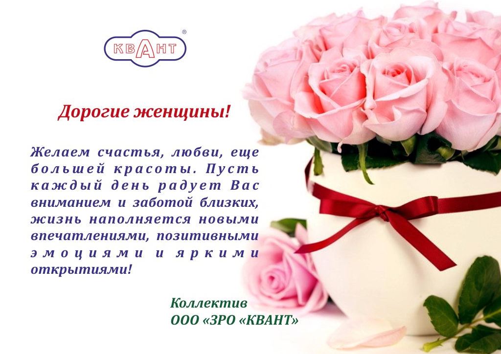 Коллектив ООО "ЗРО "КВАНТ" поздравляет всех женщин с 8 Марта!